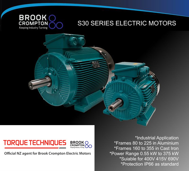 Renowned for their adaptability, Brook Crompton’s extensive motor stock can be modified to suit the needs of different market sectors, with technical support from the company’s knowledgeable team readily available to ensure the correct selection of motors for any application. For bespoke situations and complete flexibility, Torque Techniques (NZ) Ltd and Brook Crompton, will design and manufacture to meet individual customer specifications.